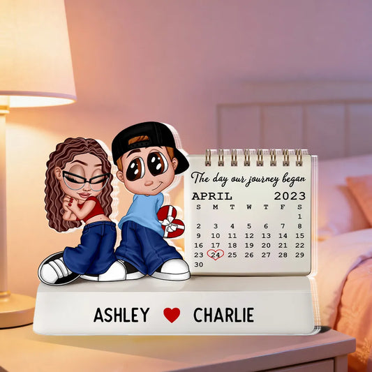 Y2K Couple The Day Our Story Began Couple Anniversary Calendar - Personalized Acrylic Block Plaque
