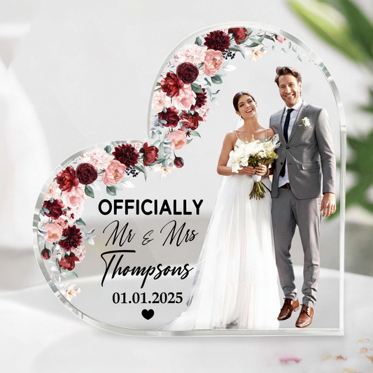 Officially Mr & Mrs - Personalized Acrylic Photo Plaque