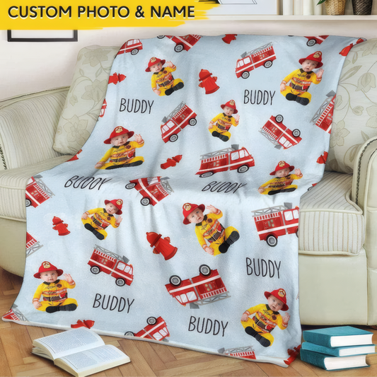 Upload Photo Baby Firefighter Blanket - Personalize Gift For Son