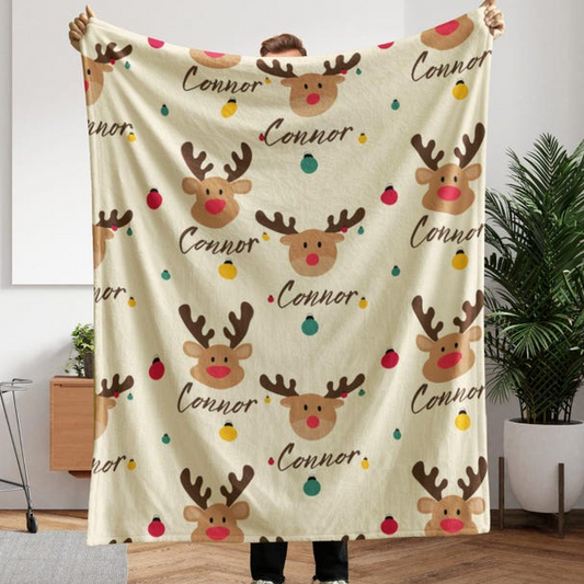 Personalized Christmas Blanket for Kids and Babies for the Holiday Season – Cute Reindeer Style – Cozy Fleece, Sherpa Material