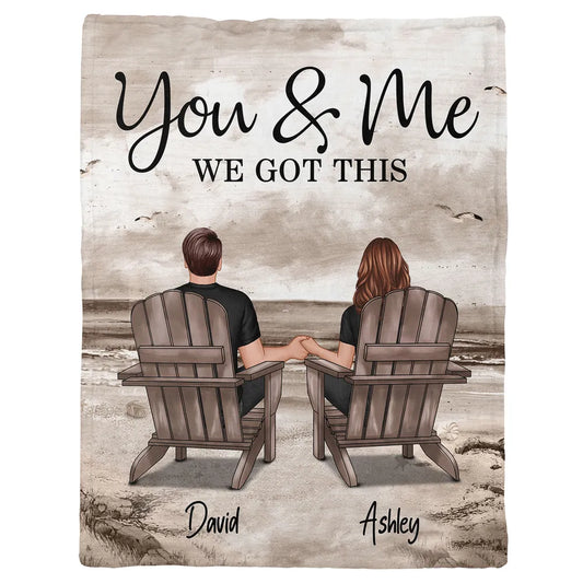 Retro Vintage Back View Couple Sitting Beach Landscape Personalized Fleece Blanket - Romantic Gift For Couples