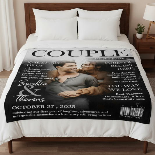 Personalized Love Story Couple Magazine Cover Blanket - Gift For Romantic Couple
