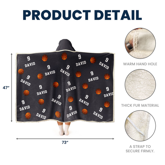 Basketball Custom Name, Number - Personalized Wearable Blanket Hoodie