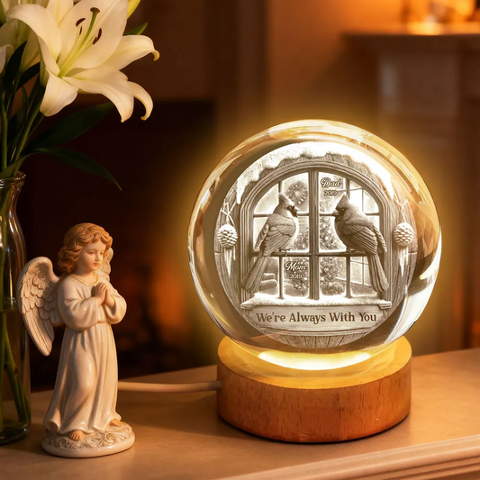 Memorial Cardinal Outside Window - Personalized Crystal Ball LED Night Light - Memorial Sympathy Gift