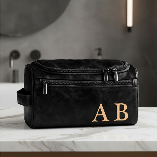 Laser Engraved Personalized Classic Initial Leather Toiletry Bag - Perfect Gift for Dad or Husband