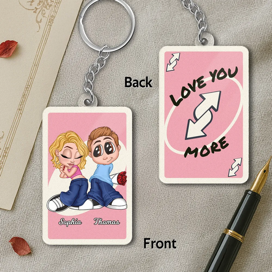 Love You More Game Card Style Y2K Couple - Personalized Acrylic Keychain - Valentine's Day Gift, Anniversary Gift For Him, For Her