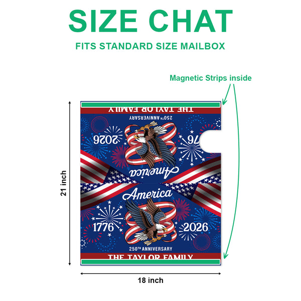 Celebrate America's legacy with this striking personalized mailbox cover, custom-designed to honor the nation's 250th anniversary. Featuring your family name prominently displayed alongside patriotic imagery, this durable cover transforms your mailbox into a meaningful tribute. Perfect for history enthusiasts and proud Americans, it combines functional protection with heartfelt sentiment. Weather-resistant construction ensures lasting beauty through every season. An ideal gift for homeowners who appreciate both patriotism and personalization, this unique piece sparks conversation while safeguarding your mail. Make your home's entrance a statement of family pride and national pride.