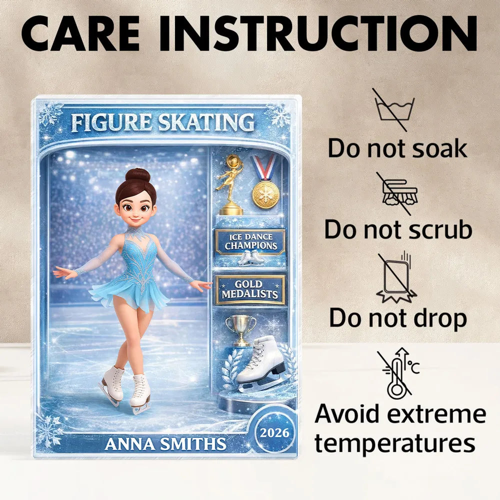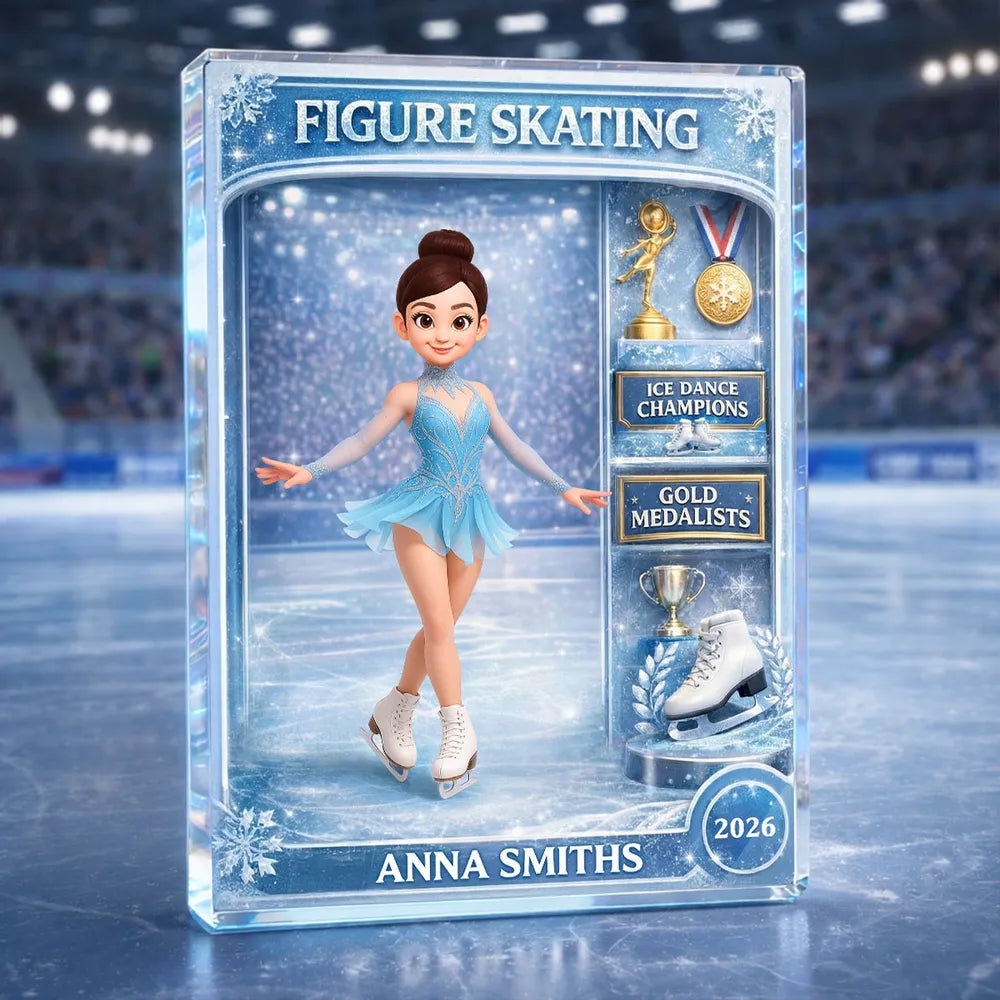 Celebrate grace, strength, and dedication with this stunning personalized acrylic block plaque designed to capture the excitement of figure skating. Instantly eye-catching with its dynamic skating pose and vibrant details, it draws interest through its high-gloss acrylic finish and collectible-style design. Personalized with a name and year, it becomes a meaningful tribute to hard work, achievements, and passion for the sport. Whether displayed as a keepsake or given as a gift, this plaque is the perfect way to honor a figure skater’s journey and inspire pride every time it’s seen.
