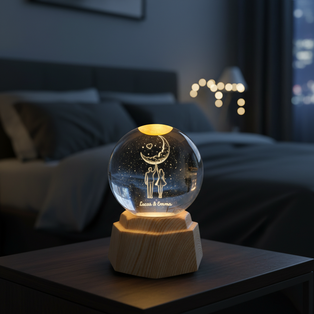 Personalised Moon 3D Crystal Ball Lamp for Couples