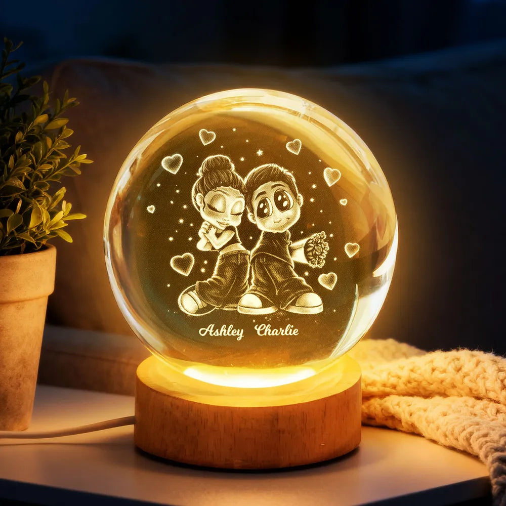 Y2K Couple - Personalized Crystal Ball LED Night Light - Sentimental Valentine's Day Gift for Her, for Him