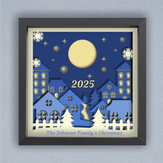 3D Layered Papercut Christmas Town Framed Picture – Personalized Holiday Décor Design for Christmas Gifts