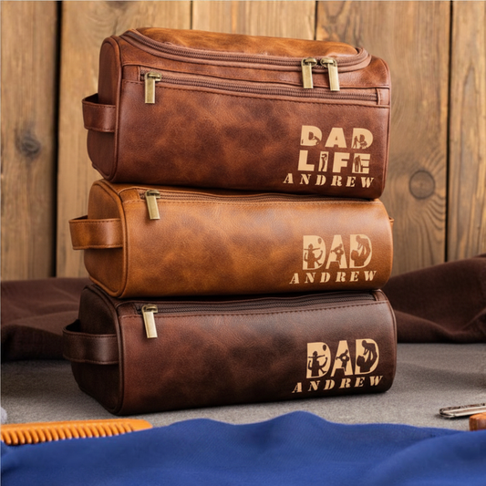 Engraved Leather Toiletry Bag for Dad – Custom Name “Dad Life” Edition