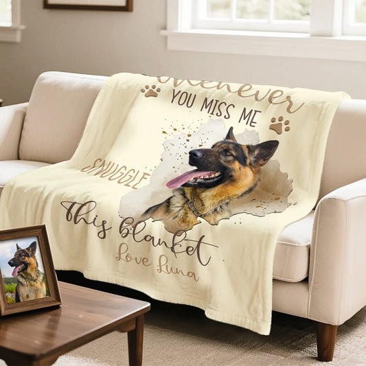 Personalised Whenever You Miss Me Snuggle This Pet Photo Soft Blanket with Name Sympathy Memorial Birthday Gift for Pet Owners Lovers