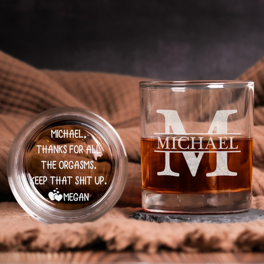 Thanks For All The Orgasms Custom Name Gift For Husband, Boyfriend - Personalized Whiskey Glass