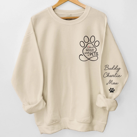 Custom Unisex Sweatshirt, Hoodie With Design On Sleeve - Personalized Christmas Birthday Gifts For Dog Cat Lovers, Dog Dad And Mom, Cat Owners - Loved By My Fur Crew