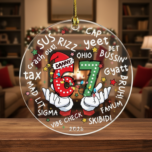 Personalized Funny Kids 6 7 Christmas Ornament – Custom Six Seven Meme Holiday Decoration, Cute Gen Alpha Christmas Tree Ornament, Trendy Personalized Gift for Kids & Families