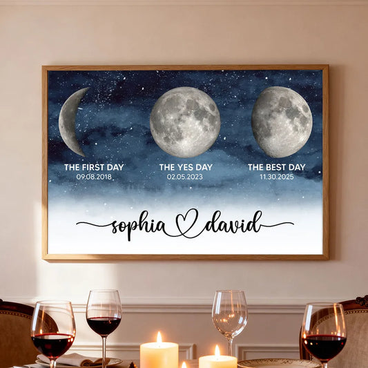 Starry Night Love Story Couple Custom Moon Phase Anniversary Dates - Personalized Poster - Heartfelt Anniversary Gift, Valentine Gift, Wedding Gift For Couple