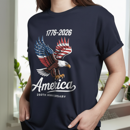 250 Years USA 250th Birthday 1776-2026 Eagle Flag Dark Basic Tee