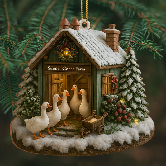 Vendor:Made It OneCharming Winter Duck Farm Christmas Scene, Personalized Custom Wood Ornament, Gift For Animal Lovers