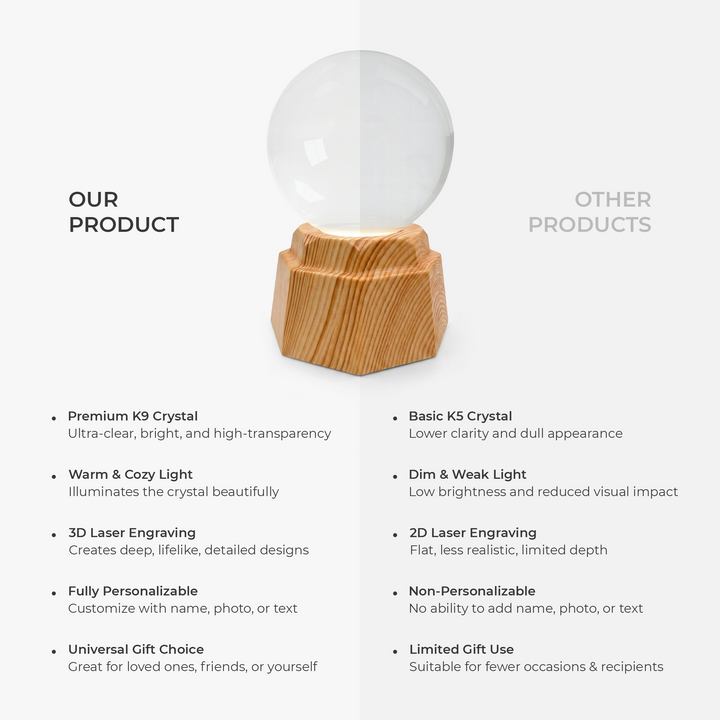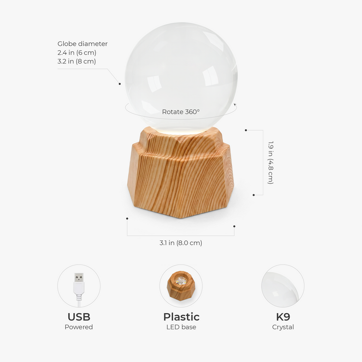 Premium Quality: High-clarity K9 crystal with a smooth 360° rotating LED base.