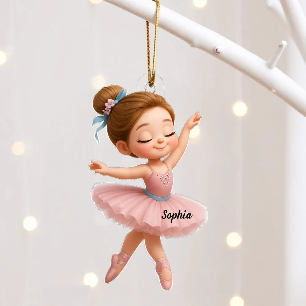 3D Effect Little Girl Ballerina Dance Personalized Christmas Ornament