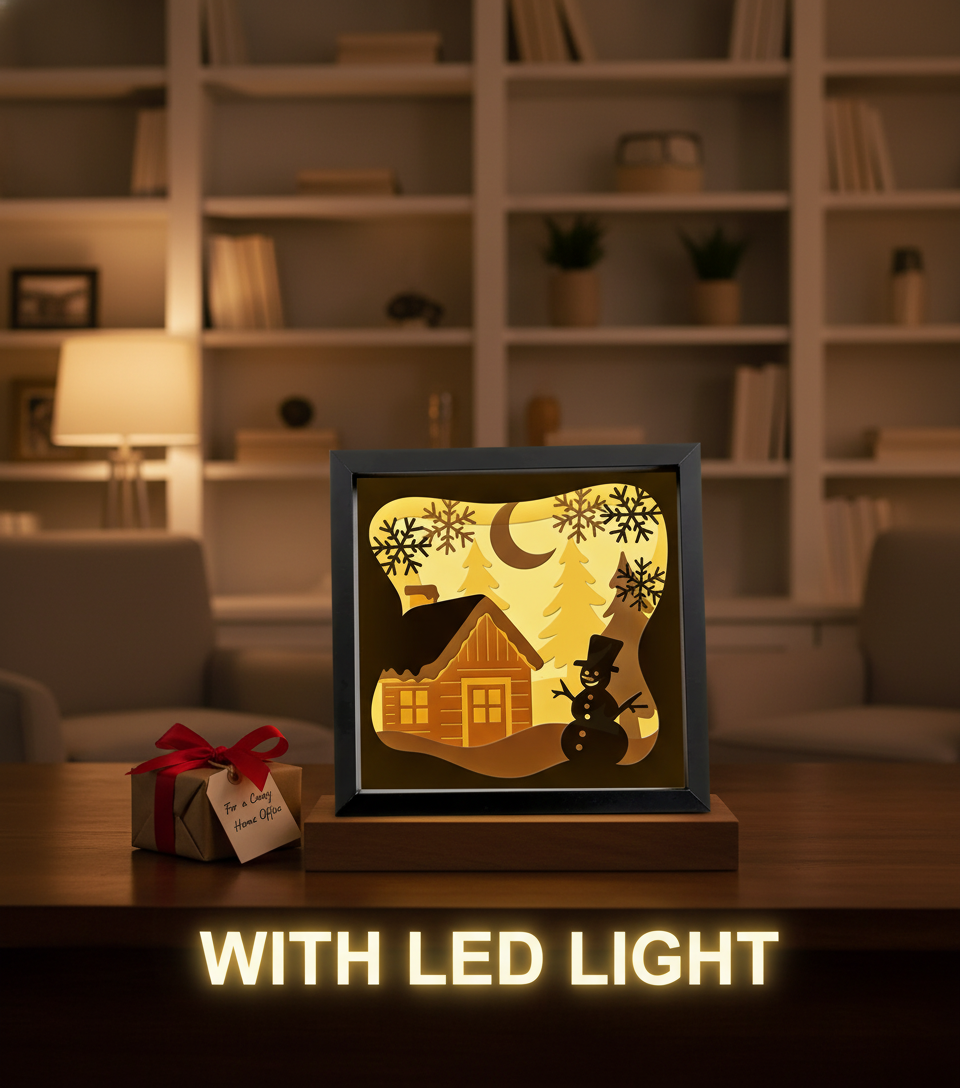 Celebrate the magic of Christmas with our 3D Winter Cabin Papercut Frame Picture featuring a joyful Snowman. This beautifully layered papercut artwork brings the peaceful charm of a snowy cabin to life—making it the perfect piece to warm up your home for the holidays.