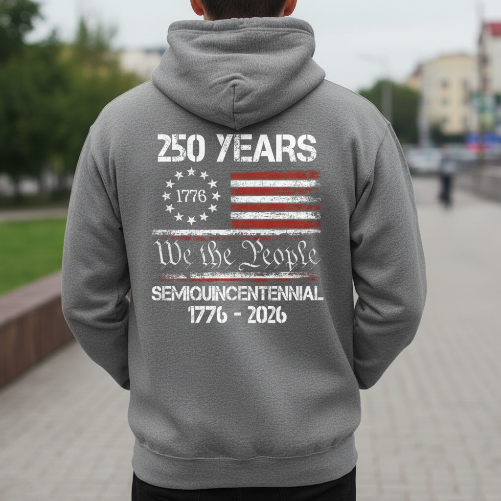Celebrate Our America 250th Anniversary United States Semiquincentennial Back Side Dark Pullover Hoodie
