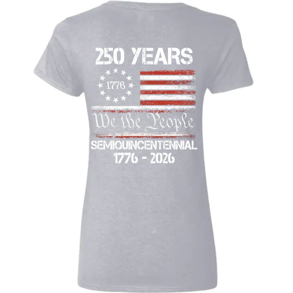 Celebrate Our America 250th Anniversary United States Semiquincentennial Back Side Dark Woman V Neck