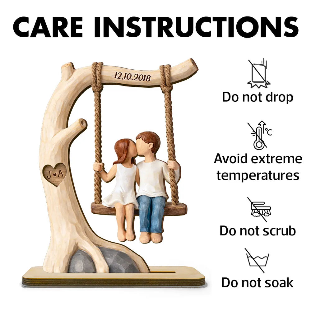 Celebrate love that has grown gently and deeply over time with this heartfelt personalized wooden plaque. Featuring a romantic couple sharing a quiet moment on a rustic wooden swing, this design beautifully captures the innocence of first love and the comfort of lasting companionship. Inspired by farmhouse and rustic aesthetics, the scene evokes warmth, nostalgia, and a sense of peaceful togetherness—perfect for couples who cherish memories more than grand gestures. This plaque can be personalized with names, initials, and a meaningful date, turning a simple décor piece into a treasured keepsake. It’s a touching reminder of where the journey began—and how far love has come.