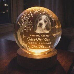 Custom Photo Crystal Globe Lamp - Personalized Pet Memorial Sympathy Gifts For Dogs, Cats - Gone Yet Always Near