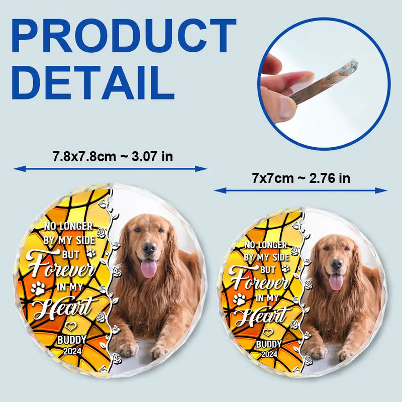Custom Photo No Longer By Our Side Dog Cat Pet Memorial Heart - Personalized Circle Glass Ornament
