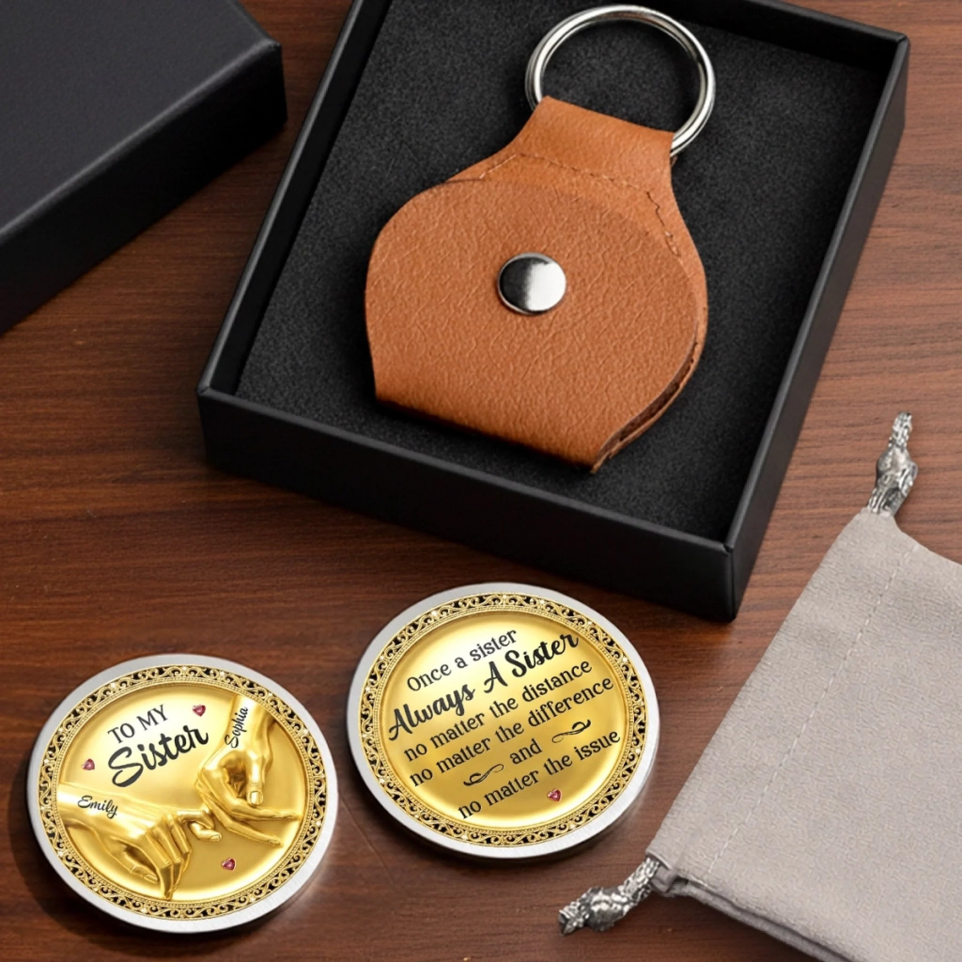 Custom Pocket Hug - Personalized Best Friend Birthday Gifts For Women, Besties, Sisters, BFF - Strong Souls Called Sisters