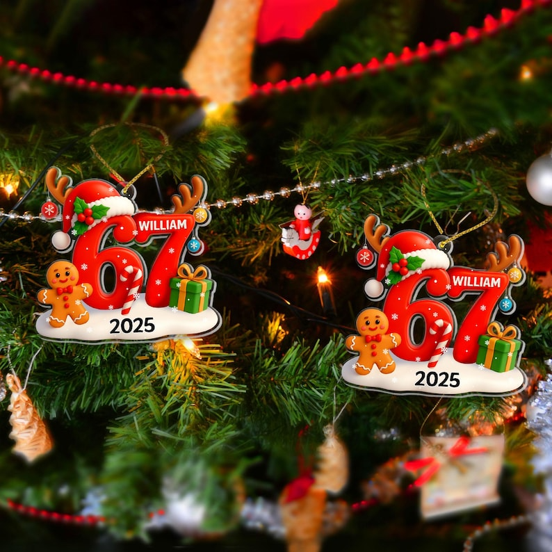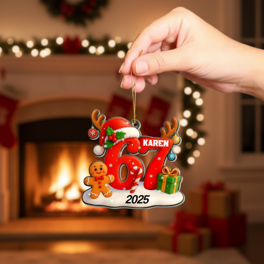 Custom Six Seven Meme Christmas Ornament – Hilarious 6 7 Teen Slang Acrylic Keepsake, Personalized Holiday Decor for Teenagers, Trendy 67 Meme Gift for Friends & Family