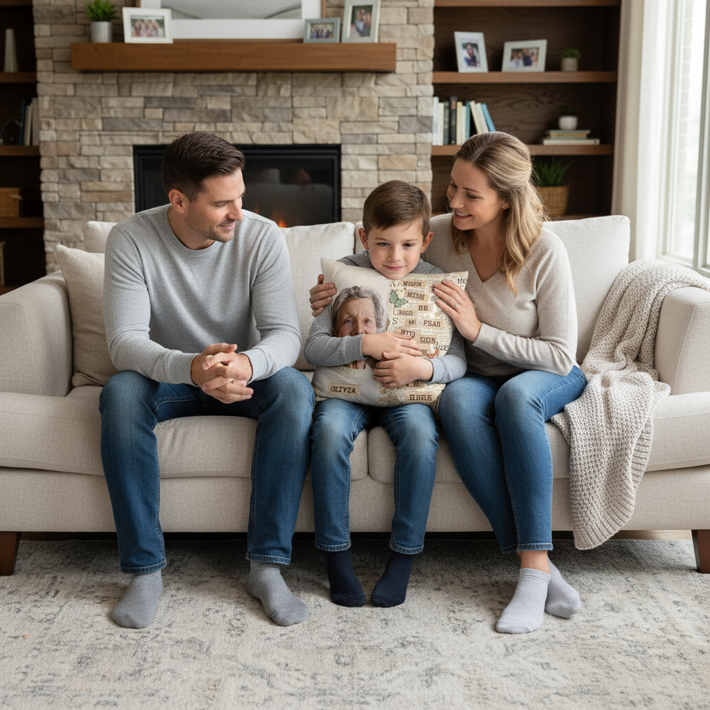 Ideal for bedrooms, living rooms, or a quiet remembrance space, this personalized pillow brings a sense of peace and connection. It also makes a thoughtful sympathy gift for family members coping with loss, offering comfort, love, and reassurance during difficult times.