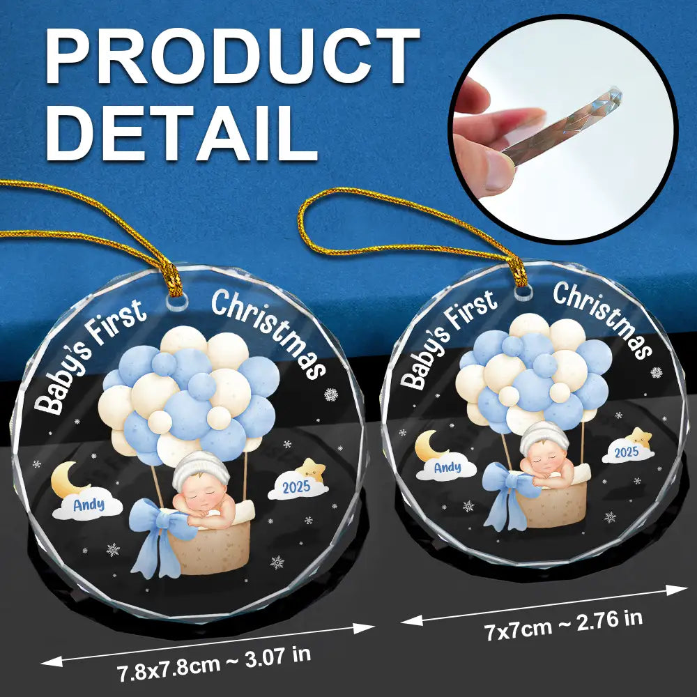 My First Christmas Baby Girl Boy - Personalized Circle Glass Ornament