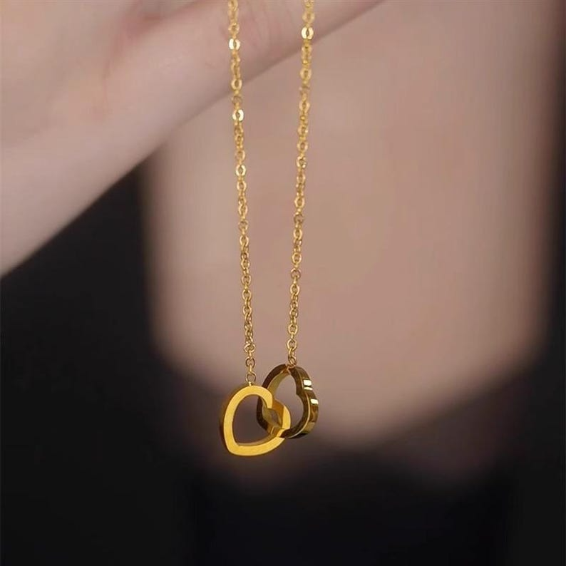 Double Heart Interlocking Necklace – Minimalist Love Pendant for Girlfriend & Wife