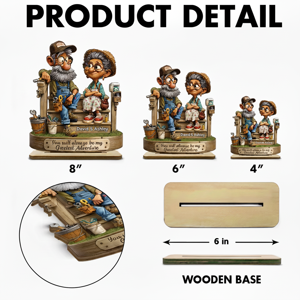 Celebrate a lifetime of love, laughter, and shared adventures with this beautifully crafted personalized 2-layered wooden plaque. Featuring a charming senior couple relaxing on a porch, this design instantly captures attention with its warmth and storytelling detail. Custom names transform the artwork into a deeply personal keepsake, while the heartfelt message creates an emotional connection that resonates with years of memories. Perfect for anniversaries, Valentine’s Day, or simply honoring a lasting bond, this plaque adds meaningful character to any home décor.